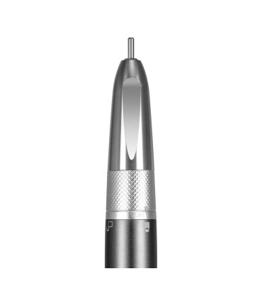 The knob located at the top of the device allows for smooth adjustment of the head speed up to 35,000 revolutions per minute , which allows for optimal adjustment to individual needs and comfortable performance of various procedures. The touch panel allows you to easily stop the device (pause function), as well as change the direction of rotation, which provides full control over the milling machine and makes it easier to adjust its operation to specific services. The clear screen displays the status of the equipment - it informs about the speed and direction of rotation , battery status and activation of the pause.
