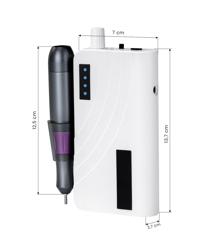 The 201 cordless manicure milling machine is a small and handy device that is perfect for mobile nail stylists , allowing you to work comfortably anywhere. It makes it much easier to remove remnants of previous styling and improves the preparation of nails for further treatments. It allows for comfortable work for up to 10 hours on a single charge .