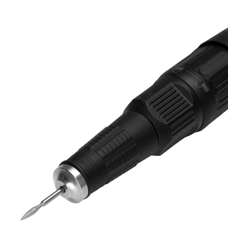Odpowiednio wyprofilowana głowica idealnie leży w dłoni, zapewniając precyzję i komfort użytkowania. Wbudowany system Twist-Lock umożliwia szybką, intuicyjną wymianę frezów, co przekłada się na płynność oraz precyzję pracy. Ergonomiczny kształt i wyważenie elementu minimalizują zmęczenie dłoni nawet przy dłuższych zabiegach.