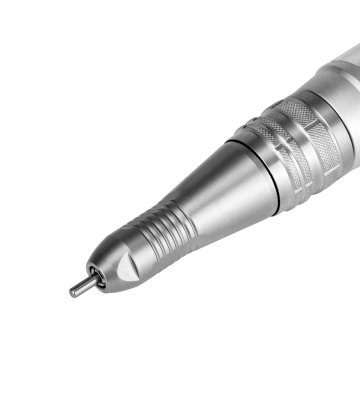 Frezarka jest wyposażona w przejrzysty panel sterowania z cyfrowym wyświetlaczem, który pełni kluczową rolę w monitorowaniu i kontrolowaniu pracy urządzenia. Ekran informuje o prędkości obrotowej, z jaką w danym momencie pracuje głowica urządzenia, aby zapewnić precyzyjne i bezpieczne działanie frezarki. Regulacja prędkości przy użyciu pokrętła jest możliwa do 30 000 obrotów na minutę, co pozwala na dostosowanie do indywidualnych potrzeb, a co za tym idzie komfortowe wykonywanie szerokiej gamy zabiegów. Dodatkowo dioda kierunku obrotów świeci w kolorze zielonym lub czerwonym, ułatwiając rozpoznanie kierunku pracy frezarki. Panel sterowania ma także funkcję pauzy, co pozwala użytkownikowi na zatrzymanie pracy urządzenia, co zwiększa kontrolę nad procesem. Zastosowane rozwiązania sprawiają, że obsługa frezarki staje się intuicyjna i bardzo efektywna.