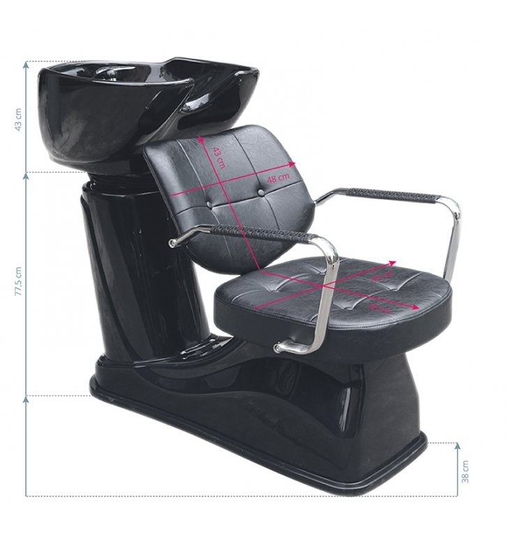The wash station has a black ceramic bowl and silver armrests, which gives it a modern look and fits perfectly into modern interiors. This is a piece of furniture that will definitely stand out in any hairdressing space and attract the attention of customers.