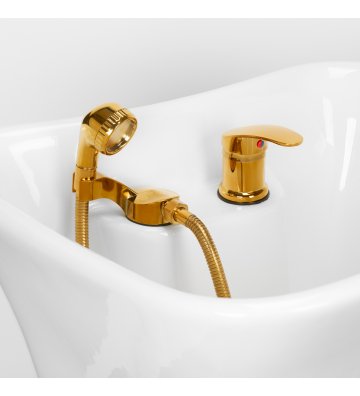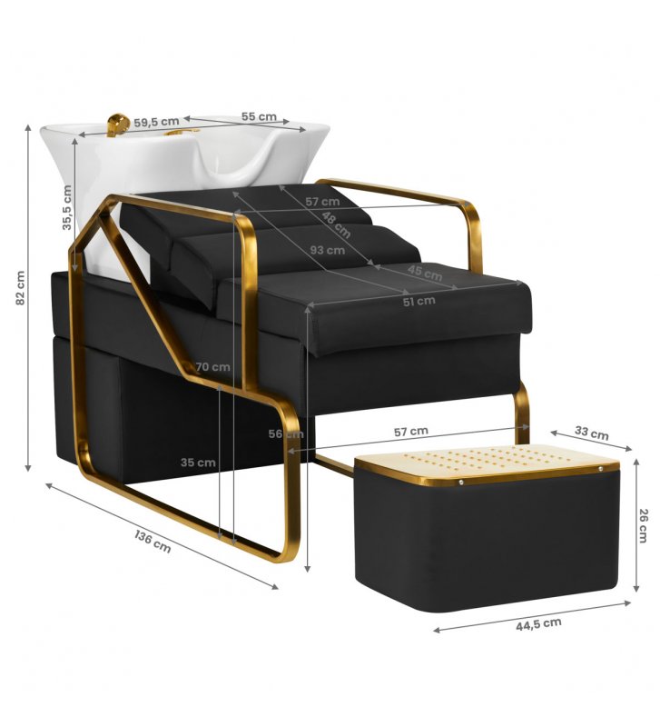 The Diana hairdressing wash station in gold and black from Gabbiano is the perfect combination of functionality and elegance. Made of the highest quality materials, perfectly finished and designed with the customer's comfort in mind. Thanks to the special construction, the customer has a solid head support during washing, which increases the comfort of the treatment.