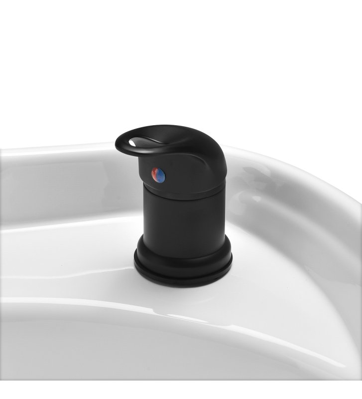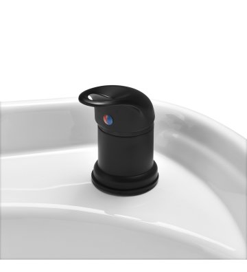 Odpowiednia głębokość białej ceramicznej misy umywalki zapobiega nadmiernemu rozchlapywaniu wody czy produktów stosowanych w trakcie zabiegów. Pozwala to na komfortowe i efektywne wykonywanie szerokiej gamy usług. Kąt nachylenia misy można dostosowywać, dzięki czemu łatwo o dopasowanie do indywidualnych potrzeb. Wysoka jakość zastosowanych materiałów sprawia, że umywalka jest wytrzymała, odporna na przebarwienia i zadrapania oraz bardzo łatwa do czyszczenia. Odpowiednio wyprofilowany kołnierz oraz nachylone oparcie zapewniają wsparcie i wygodę w trakcie mycia włosów, a dzięki komfortowej nakładce z tworzywa sztucznego w odcieniach czerni klient nie odczuje nieprzyjemności związanych z chłodem ceramicznej powierzchni.