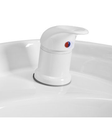 Praktyczna myjnia wyposażona została w baterię z mieszaczem, co zapewnia swobodny dostęp do ciepłej oraz zimnej wody. Ułatwia to dopasowanie temperatury do indywidualnych preferencji klienta. Dedykowane miejsce na odłożenie słuchawki usprawnia pracę, a chromowany korek ze specjalnym sitkiem pozwala na kontrolę przepływu wody oraz utrzymanie wysokich standardów higieny w salonie. Przyłącze wody zostało umieszczone wewnątrz podstawy, umożliwiając sprawne ukrywanie rur. Znacznym plusem tego modelu jest otwór pozostawiony pomiędzy oparciem a siedziskiem, który ułatwia zachowanie czystości w salonie, pozwalając w łatwy sposób wymieść zabrudzenia z każdego zakamarka fotela. Myjnia wyprofilowana została w taki sposób, by zapewniać wygodę podczas wykonywania różnorodnych zabiegów, gwarantując odpowiednie wsparcie pleców. Połączenie funkcjonalności i udogodnień sprawia, że praca w salonie fryzjerskim jest jeszcze bardziej komfortowa.