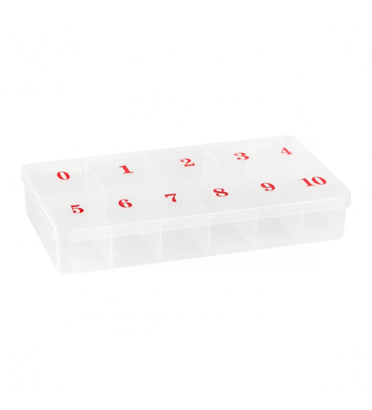 A functional organizer with eleven numbered compartments will allow you to organize small accessories for nail styling or eyelash extensions. The different dimensions of the containers give you the opportunity to store decorations and tips of various sizes. The box will also work well for holding small utensils for other cosmetic treatments, and thanks to the closure , the products will not spill out during transport.
