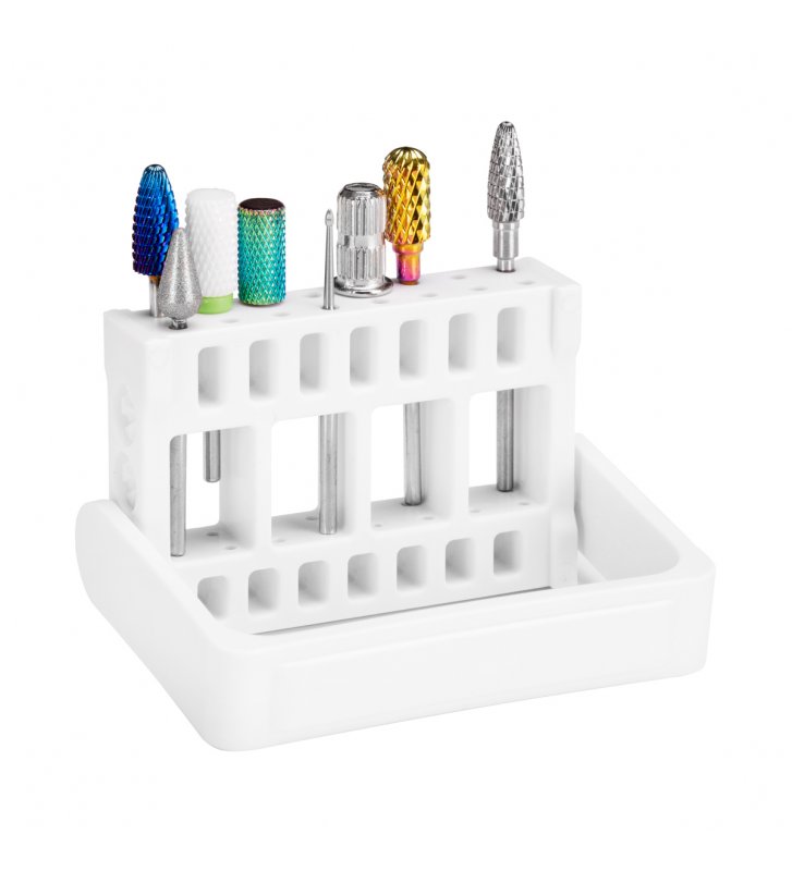 Podstawka na frezy Exo z tworzywa sztucznego, jest trwała i stabilna. Pozwoli na zachowanie większego porządku i lepszą organizację podczas pracy z frezarką.