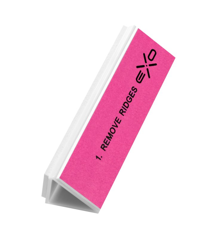 Trzystronny blok polerski EXO w kształcie trójkąta przeznaczony jest do pielęgnacji paznokci naturalnych – wygładza, poleruje i nabłyszcza. Trzy strony o różnych gradacjach przeznaczone są do: usuwania nierówności, polerowania oraz nabłyszczania. Polerka jest bezpieczniejsza niż pilnik, minimalizuje prawdopodobieństwo uszkodzenia struktury paznokcia.
