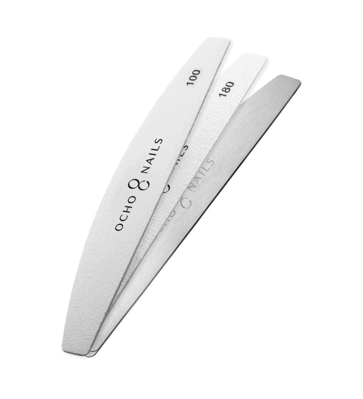 Ocho Nails pilnik półksiężyc metalowy rdzeń + papierki 100/180 20 szt.