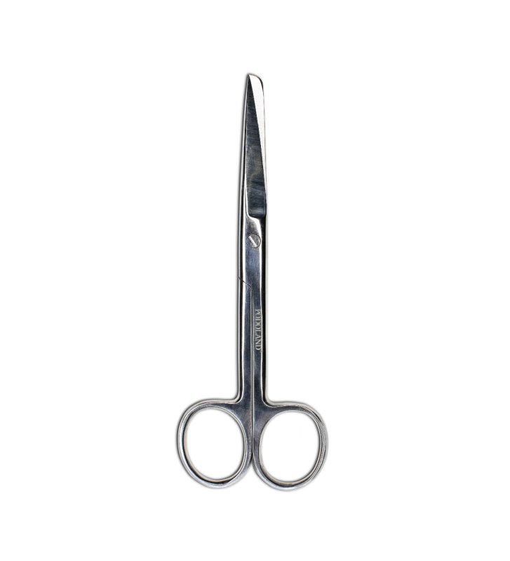 Straight podiatry scissors are made of high-quality stainless steel. The working part of the tool is straight, so it easily cuts dressing materials, inserts, pressure reliefs and taping tapes. One working part has a sharp shape, the other has a rounded shape. The design ensures safe use. The scissors can be used both in specialist offices and at home. The tool is reusable and can be disinfected and sterilized.