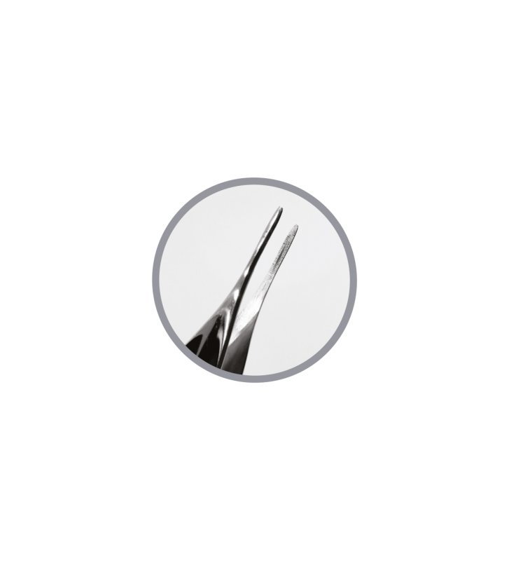 Pęseta podologiczna L została wykonana z najwyższej jakości stali nierdzewnej. Specjalna konstrukcja ząbkowanego ostrza i spiczastej końcówki umożliwia precyzyjne chwytanie najdrobniejszych elementów. Wielkość pęsety pozwala na użycie dużej siły w procesie oczyszczania obszarów w wałach paznokciowych oraz obszarów pod płytką paznokciową. Wyjątkowa wytrzymałość pęsety ułatwia wykorzystanie narzędzia przy aplikacji np. fragmentów rekonstrukcji płytki paznokciowej. Pęseta może być sterylizowana w autoklawie.