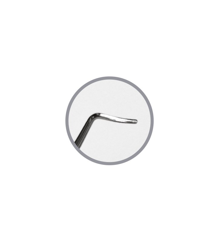 Mini sonda podologiczna została wykonana z najwyższej jakości stali nierdzewnej. Narzędzie jest przeznaczone do zakładania tamponad oraz do oczyszczania przestrzeni przy wałach paznokciowych. Sonda posiada niezwykle komfortową rękojeść. Optymalny rozmiar narzędzia zapewnia bezpieczeństwo przy użytkowaniu przez osoby początkujące. Sonda jest przystosowana do sterylizacji w autoklawie.