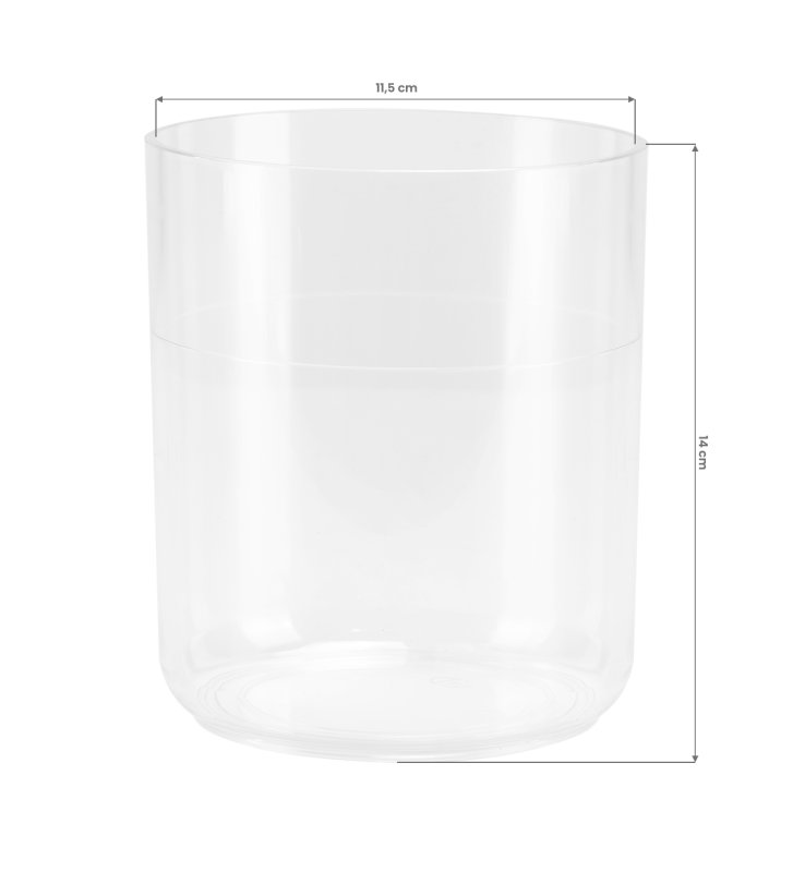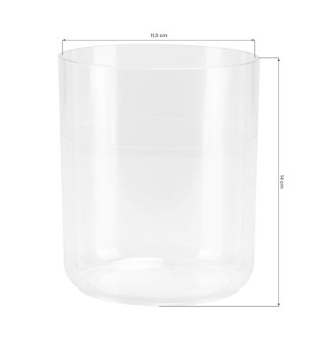 Szklanka do wapozonu wykonana z transparentnego tworzywa sztucznego. Zastosowany materiał zapewnia odporność na wysokie temperatury oraz łatwość czyszczenia. Wymienny pojemnik na wodę o średnicy +/- 11 cm i zaznaczonej kreską maksymalnej pojemności na poziomie 800 ml jest przeznaczony do używania z urządzeniem Gabbiano nawilżacz sauna stojąca 828-FD.
