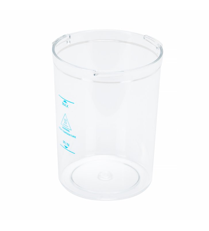 Wymienny pojemnik wykonany z transparentnego tworzywa sztucznego, odpornego na wysokie temperatury. Szklanka posiada oznaczenia minimalnego i maksymalnego poziomu wody, co ułatwia bezpieczne użytkowanie. Lekka konstrukcja i gładka powierzchnia zapewniają łatwość czyszczenia. Wymienny pojemnik na wodę o średnicy +/- 11 cm i zaznaczonej pojemności maksymalnej 750 ml, odpowiedni do wapozonów Giovanni D-20 i D-21 z lampą lupą.