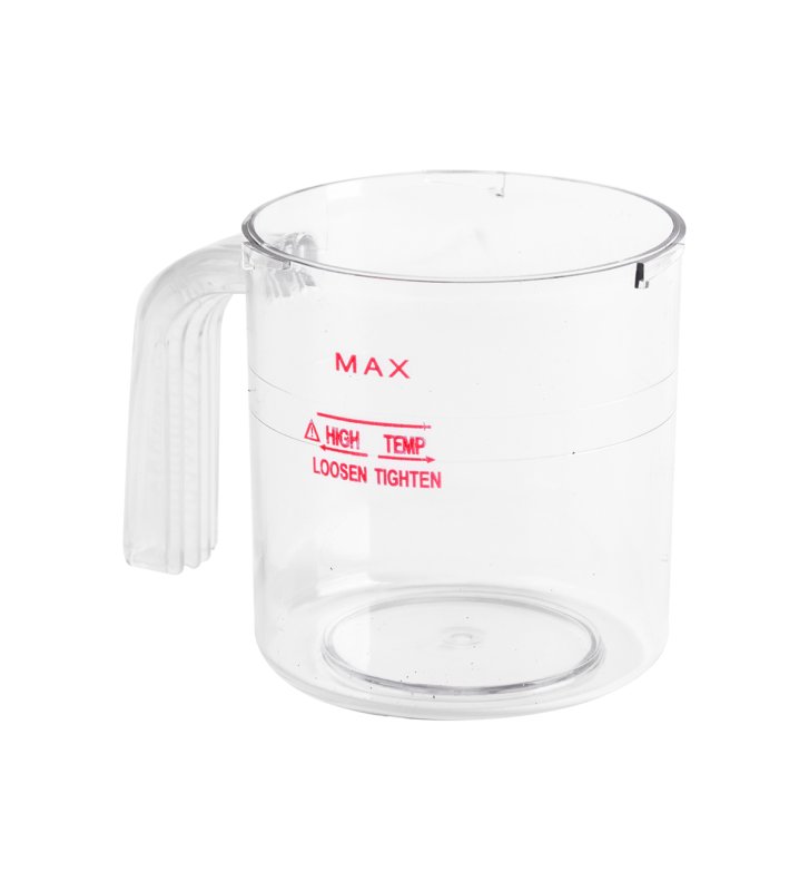 Wymienny pojemnik wykonany z transparentnego tworzywa sztucznego, odpornego na wysokie temperatury. Szklanka posiada oznaczenia maksymalnego poziomu wody, co ułatwia bezpieczne użytkowanie. Lekka konstrukcja i gładka powierzchnia zapewniają łatwość czyszczenia. Wymienny pojemnik na wodę z uchwytem ma średnicę +/- 9 cm oraz jest odpowiedni do wapozonów Giovanni F-17.
