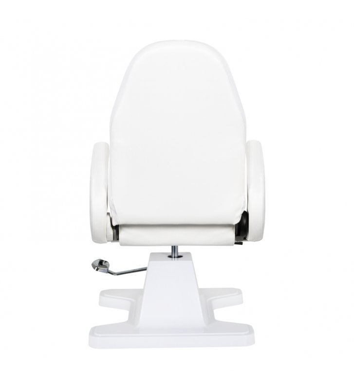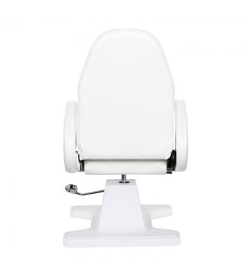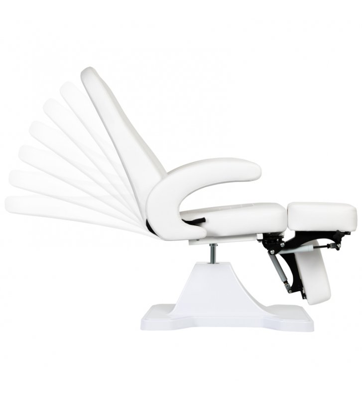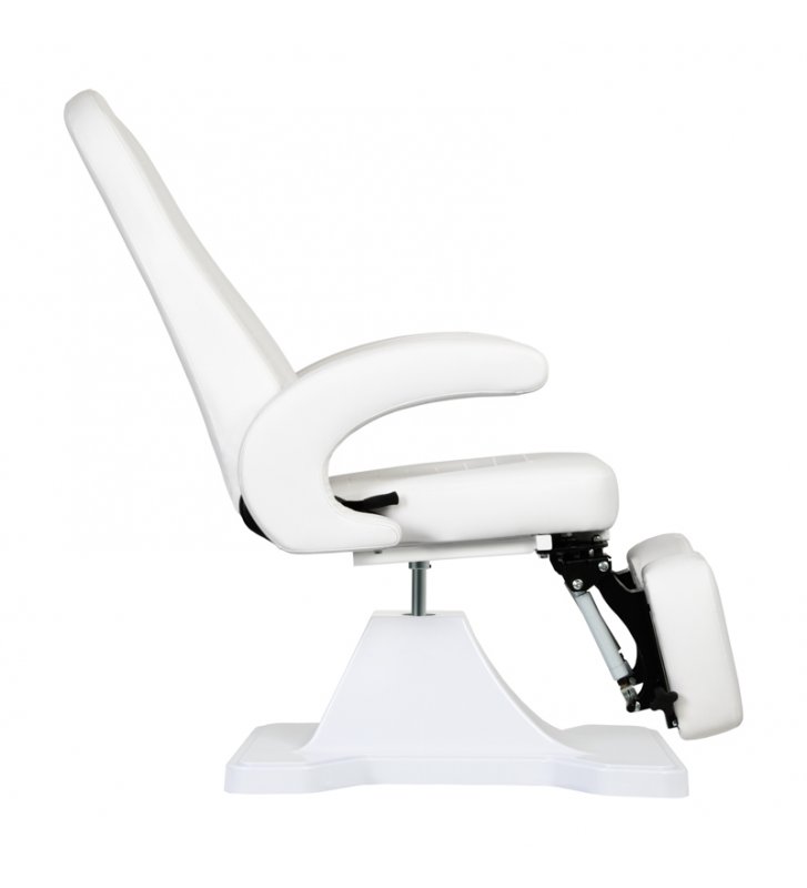 Hydration cosmetic chair. A 210C pedi white is a hydraulic beauty chair with split footrests, perfect for use in cosmetic treatments, pedicures, makeup, and massages.