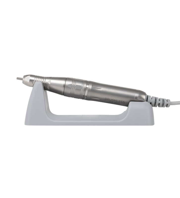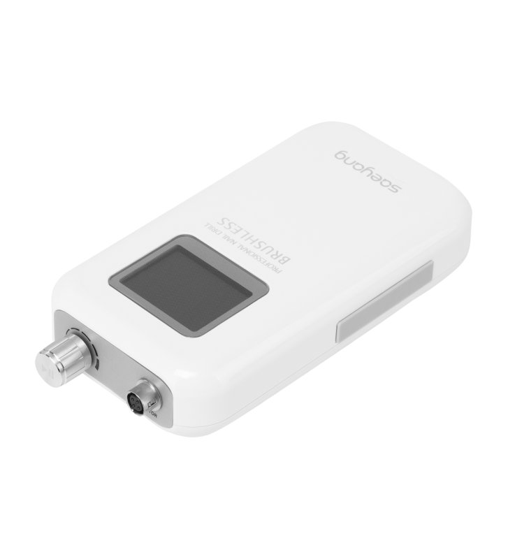 Minimalistyczna obudowa z tworzywa sztucznego w odcieniach bieli łączy trwałość z łatwością w utrzymaniu czystości, a jednocześnie stanowi atrakcyjny element wizualny stanowiska pracy. Kompaktowe wymiary i lekka konstrukcja sprawiają, że frezarka doskonale sprawdza się zarówno na niewielkich stanowiskach pracy, jak i w trakcie transportu – idealna dla osób świadczących usługi mobilne. Gumowane elementy na spodzie zapewniają większą stabilność, zapobiegając przesuwaniu się urządzenia podczas pracy, co przekłada się na bezpieczną i komfortową obsługę.
