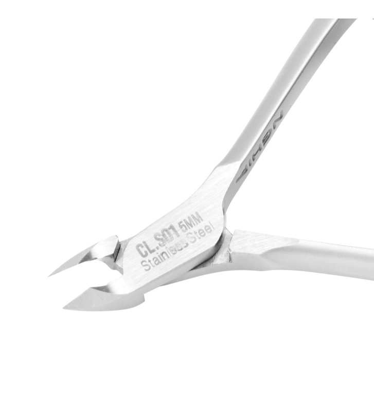 Precise 5 mm long blades are perfect for complex manicure treatments. The characteristic cut profile and appropriate size make it easier to perform very precise treatments. The jaws of the tongs are connected using the Lap Joint method , thanks to which they meet perfectly during use, ensuring accurate cutting . The tongs have a matching blade cover made of durable plastic.