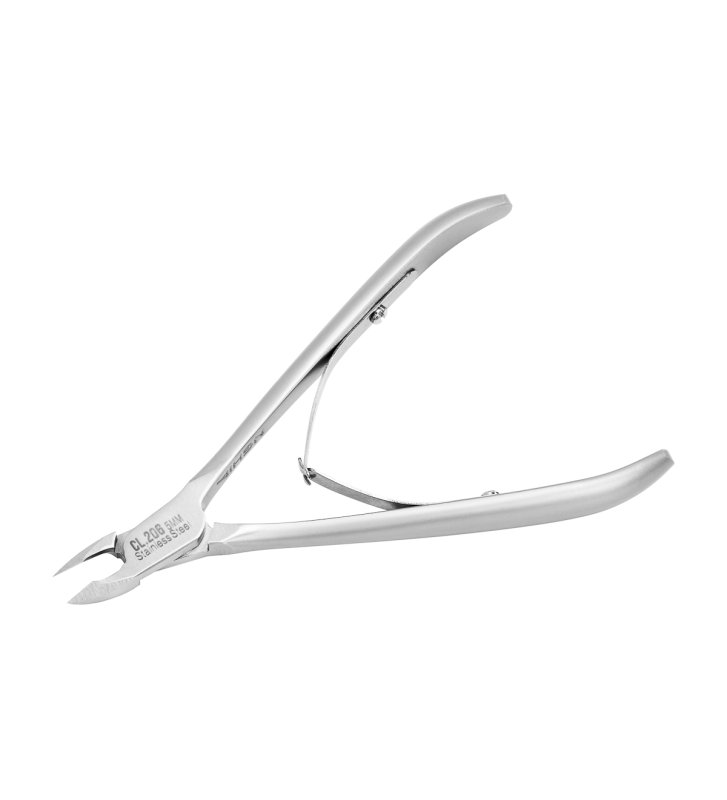 The practical double spring connecting the arms ensures excellent feel, stability and cutting precision. Careful workmanship allows for comfortable, quiet and smooth operation . The way of shaping and the size of the arms make the pliers fit perfectly in the hand , ensuring comfort of use. The matte finish makes them look elegant, and the passivated surface increases their resistance and makes them easier to keep clean . This makes them an ideal tool for both professionals and those who love taking care of their nails at home.