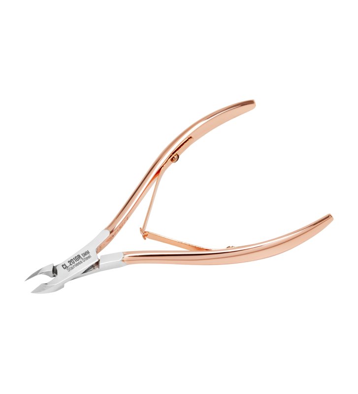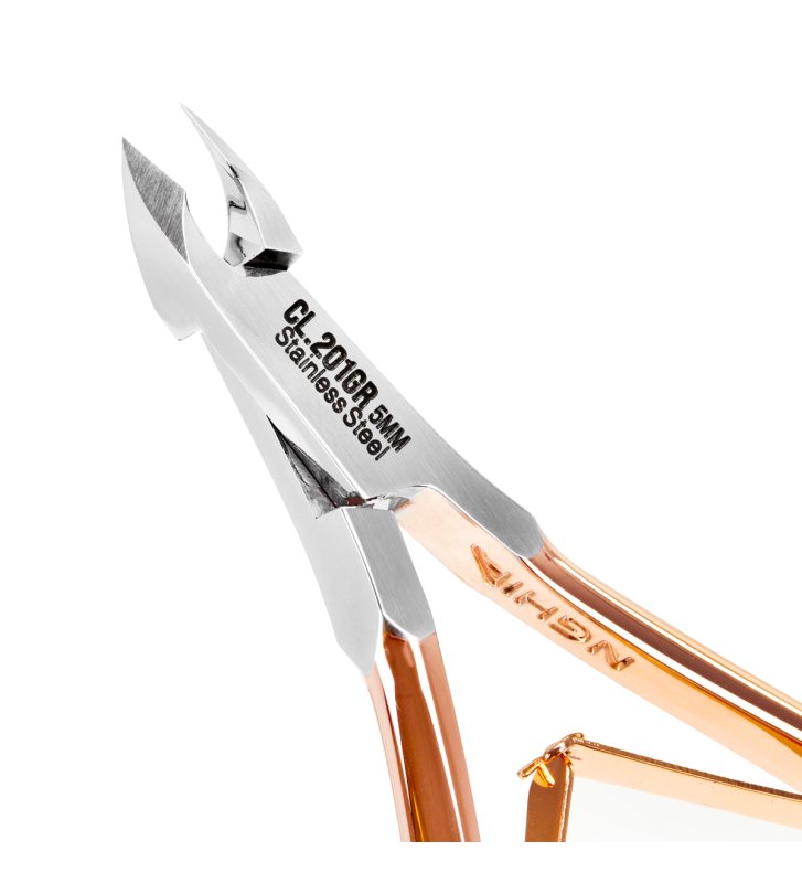 The way of shaping and the size of the arms make the pliers fit perfectly in the hand , ensuring comfort of use. The practical double spring connecting the arms ensures excellent feel, stability and cutting precision. Careful workmanship allows for comfortable, quiet and smooth operation . The polished finish in shades of rose gold makes them look elegant and is additionally characterized by high resistance and easy to keep clean . This makes them an ideal tool for both professionals and those who love taking care of their nails at home.