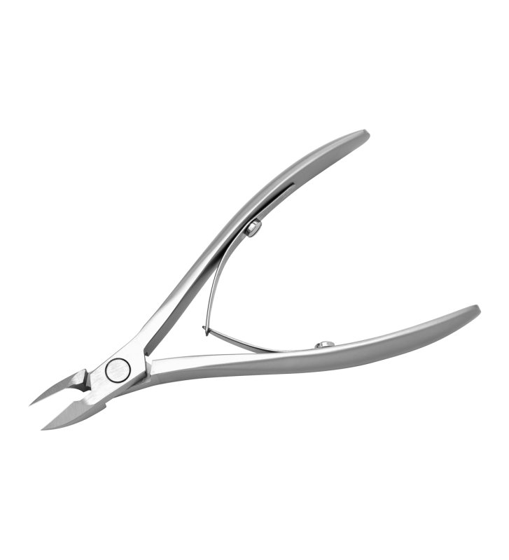 Podwójna sprężyna łączy ramiona cążek, zapewniając doskonałe wyczucie oraz precyzję cięcia. Staranne jej wykonanie pozwala na komfortową, cichą i płynną pracę. Sposób wyprofilowania oraz wielkość ramion sprawiają, że cążki stabilnie leżą w dłoni, gwarantując pełną wygodę korzystania. Matowe wykończenie sprawia, że prezentują się elegancko, a powierzchnia poddana pasywacji zwiększa ich odporność oraz ułatwia utrzymanie w czystości. Czyni je to idealnym narzędziem zarówno dla profesjonalistów, jak i miłośników pielęgnacji paznokci w warunkach domowych.