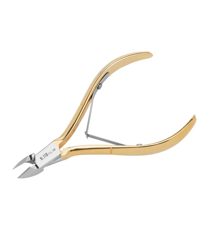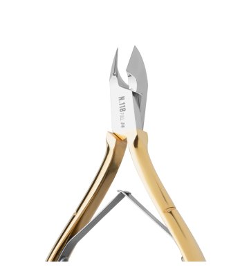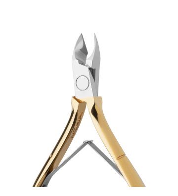 Podwójna sprężyna łączy ramiona cążek, zapewniając wyczucie oraz precyzję cięcia. Staranne jej wykonanie pozwala na cichą, komfortową pracę. Sposób wyprofilowania oraz wielkość ramion sprawiają, że cążki stabilnie leżą w dłoni, gwarantując wygodę użytkowania. Polerowane wykończenie w odcieniach złota sprawia, że prezentują się elegancko, a narzędzie jest trwałe oraz łatwe do utrzymania w czystości. Czyni je to idealnym narzędziem zarówno dla profesjonalistów, jak i podczas pielęgnacji paznokci w warunkach domowych.