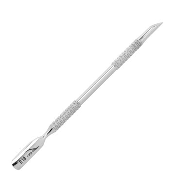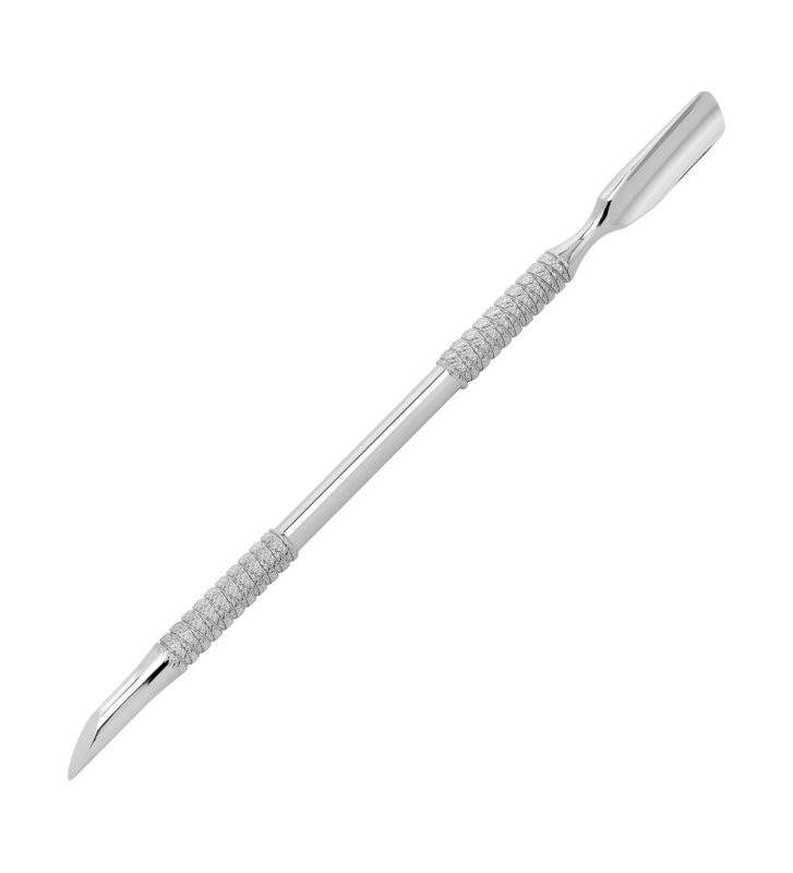 • Zaokrąglona łopatka doskonale sprawdzi się do odsuwania skórek. Jej wymiary pozwolą na dotarcie również do trudniej dostępnych miejsc. Profilowana końcówka jest oszlifowana w taki sposób, by skutecznie usuwać skórki, jednocześnie nie uszkadzając płytki paznokcia.