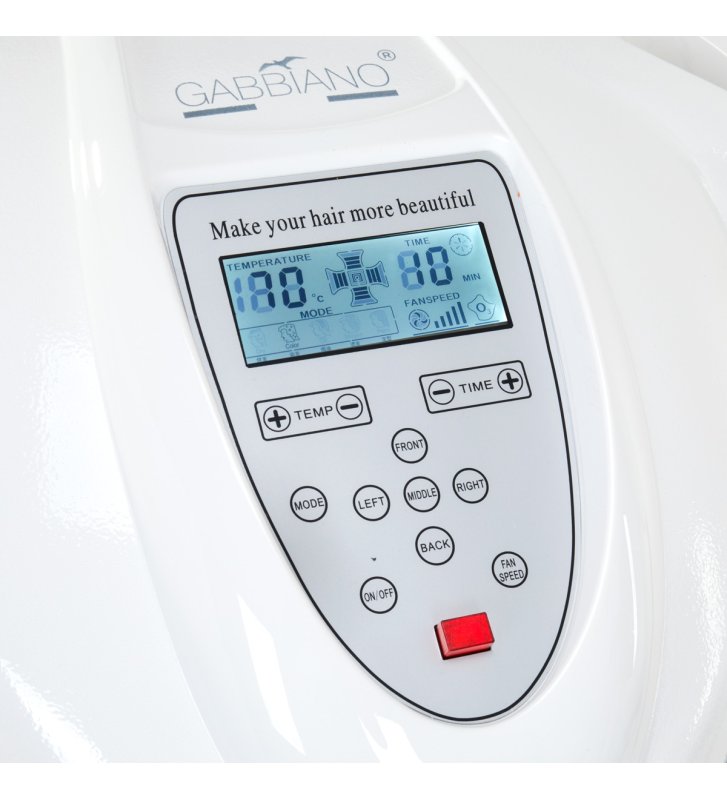 Electronic parameter regulation makes the hairdresser's work much easier. The device is equipped with an intuitive control panel with a clear LCD display , which guarantees simple operation. Using it, you can efficiently switch between automatic operating modes, set the power of each of the five air flows, temperature (in the range of 50-80 ° C) and treatment duration (between 1 and 60 min) independently. It noticeably improves the performance of various treatments .