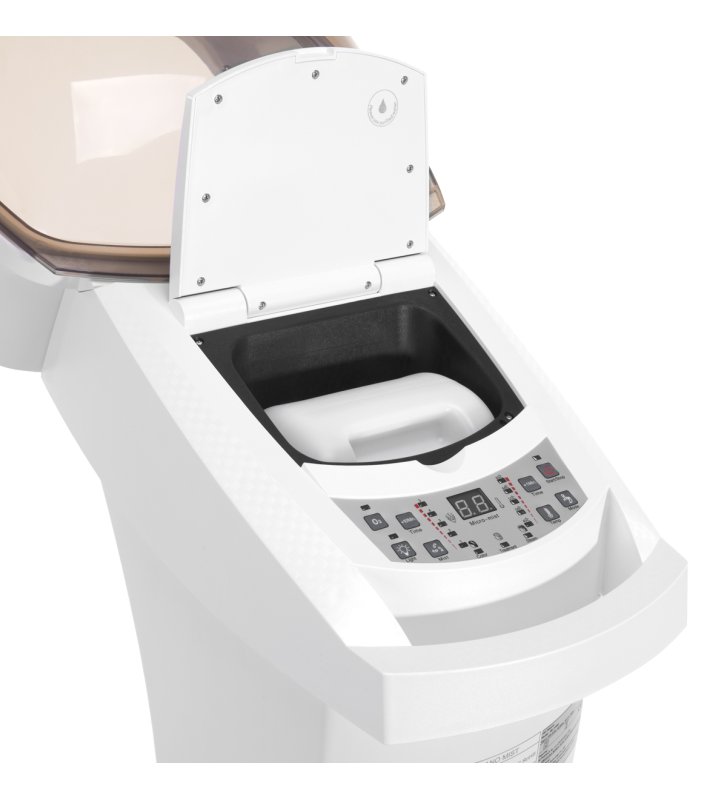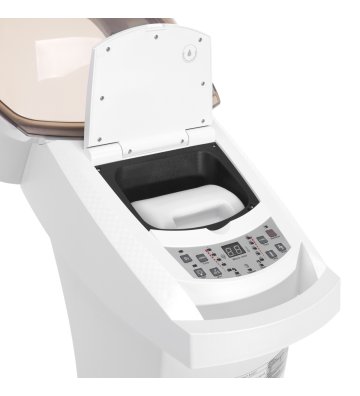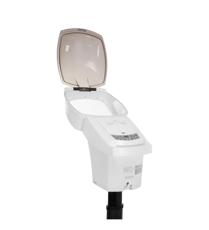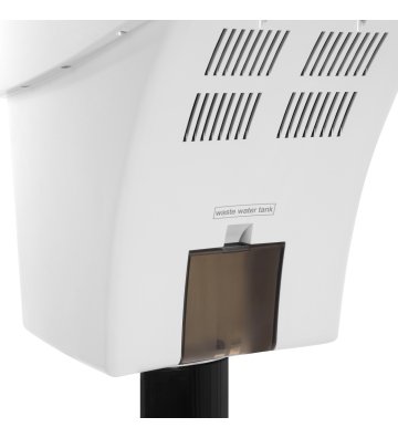 The easy-to-use device uses steam, which facilitates the absorption of conditioning substances and makes the hair soft and highly moisturized . The heat released from the water vapor stimulates microcirculation of the scalp and facilitates the transport of essential nutrients . This increases the comfort and satisfaction of the client undergoing treatment. The use of such a solution also has a positive effect on the scalp , and the hair becomes stronger and has less tendency to fall out. The device is equipped with a tank with a capacity of almost two liters for clean water and a smaller collecting container for water that condenses during treatments. The sauna is equipped with a system that informs about the lack of water in the tank with a message on the screen and a characteristic sound. The set also includes a special cap with a drawstring that makes it easier to direct steam to the hair.
