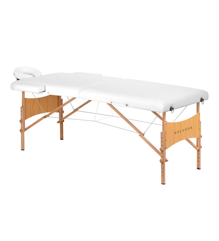 Stół składany do masażu drewniany Balance Lux 2 segmentowy 190x70 biały