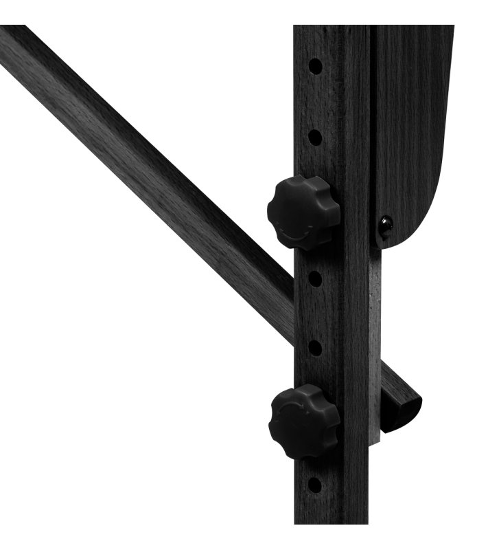 Wysokość stołu można dostosowywać do wzrostu oraz indywidualnych potrzeb osoby wykonującej zabieg przy użyciu pokręteł umieszczonych na nogach stołu w zakresie 62-92 cm. Każda z nich zbudowana jest z dwóch dopasowanych do siebie elementów, a po dobraniu stosownej wysokości wystarczy wkręcić elementy w odpowiednie otwory, by stół trzymał się stabilnie. Dodatkowo konstrukcja stelażu stabilizowana jest metalowymi linkami, co sprawia, że stół do masażu jest solidny i doskonale sprawdza się w trakcie przeprowadzania szerokiego spektrum usług.