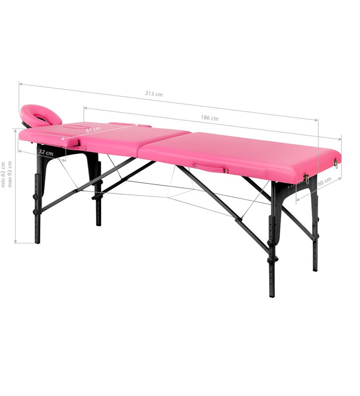 Stół składany do masażu drewniany Balance 2 segmentowe róż czarne drewno