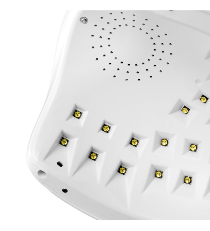 36 precisely placed LED diodes ensure perfect curing of gels and hybrid varnishes, eliminating the risk of the so-called dead zone. The closed structure , the so-called booth, allows for more accurate and faster fixation of nail styling. Thanks to Dual LED technology , the diodes emit light with two wavelengths , which reduces eye fatigue and extends the range of the device's operation. The mirror bottom evenly reflects light, which accelerates and optimizes the curing process on the entire surface of the nail . These solutions facilitate the correct curing of even the most demanding products, allowing you to reach even the most difficult to reach places on the nail plate.