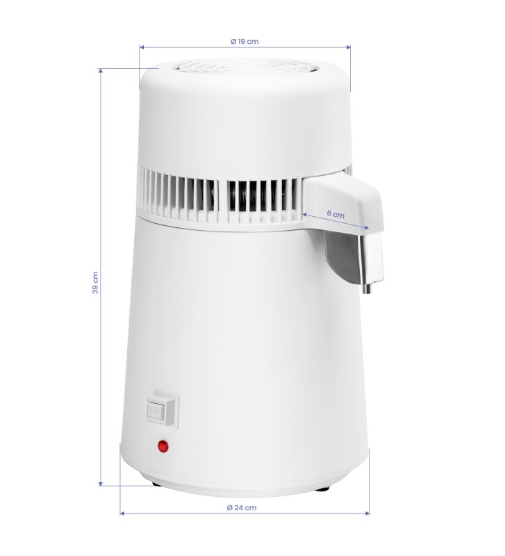 The device has been designed with easy operation in mind . Simply fill the container with water, close the lid and turn on the device, and the distillation process will start automatically. The device's capacity is 1 liter per hour , which ensures fast and effective water purification. Additionally, the automatic shutdown function after work is finished and overheating protection, which is activated when the temperature reaches 160ºC, guarantee safe use .