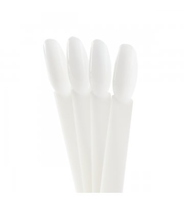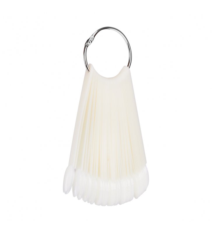 Wzornik w mlecznym kolorze pozwala na estetyczną prezentację wszelkich kolorów lakierów klasycznych oraz hybrydowych, pyłków czy żeli. Składa się z 50 pojedynczych tipsów o owalnym kształcie i w rozmiarze odpowiadającym prawdziwym paznokciom. Spięty jest praktycznym, rozpinanym kołem, które ułatwia przechowywanie całości. Każdy z tipsów wykonano z trwałego tworzywa sztucznego.