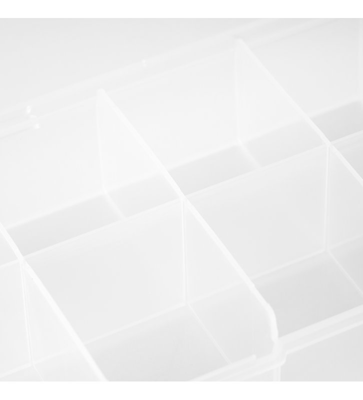 Funkcjonalny pojemnik wykonano z tworzywa sztucznego, dzięki czemu jest trwały i łatwy w czyszczeniu. Pozwala zachować higienę i ład w przechowywanych akcesoriach. Materiał, z którego wykonany jest organizer, jest przezroczysty, dzięki czemu znacznie ułatwia wyszukiwanie konkretnych ozdób i tipsów, co istotnie usprawnia pracę przy stylizacji paznokci. Idealnie sprawdzi się zarówno w domu, jak i w profesjonalnym salonie kosmetycznym. Neutralny kolor i minimalistyczny design doskonale wpiszą się w stylistykę każdego wnętrza.