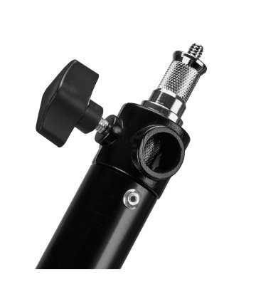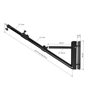 Regulowanej długości, stalowy uchwyt ścienny przeznaczony jest do lamp i ringów świetlnych z gwintami o średnicach 6 mm i 9 mm. Solidny wieszak pozwala dokładnie rozplanować oświetlenie i stabilnie umocować je nad stanowiskiem pracy.