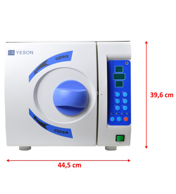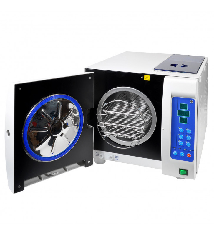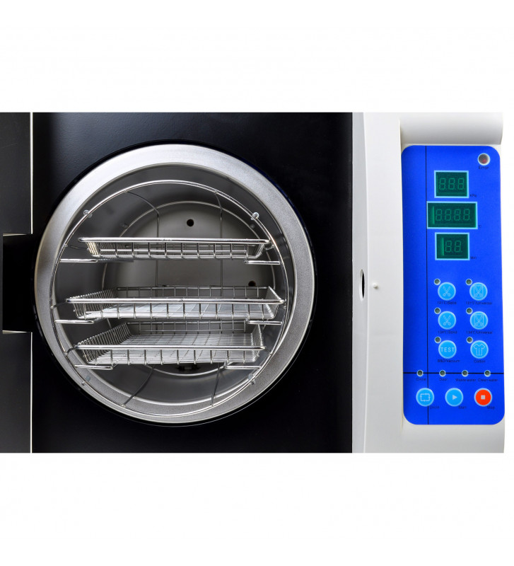 Autoklaw, przewód spustowy, koszyczek z trzema tackami, przewód zasilający, stojak na tace, uchwyt do wyjmowania tac, bezpiecznik, instrukcja obsługi w jęz. polskim, paszport techniczny.
