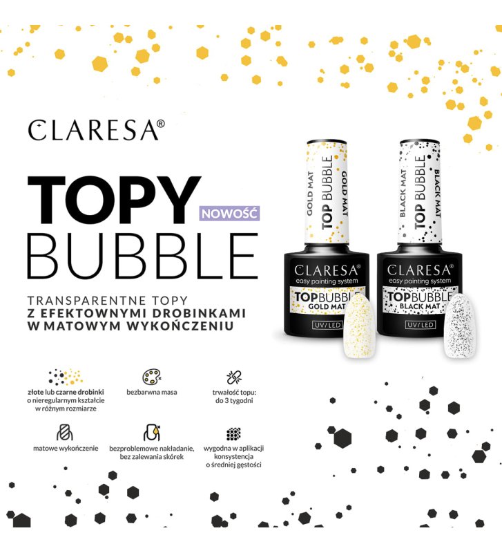 Nakrapiany kamyk, włoski deser z małymi kawałkami czekolady, aksamitny pudding z ziarenkami wanilii, kultowe czekoladowe ciastko przełożone białym kremem, przepiórcze jajo… Niezależnie od tego, z czym kojarzy Ci się top Bubble Black Matt No Wipe, szybko przekonasz się, że to prawdziwa magia zamknięta w buteleczce.
