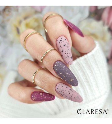 Transparentny matowy top z czarnymi drobinkami pozwoli Ci bez wysiłku i w mgnieniu oka przemienić każdy lakier hybrydowy w małe dzieło sztuki. Zatopione w produkcie drobinki różnią się wielkością i kształtem, dzięki czemu Twój manicure stanie się jeszcze bardziej wielowymiarowy, a matowe wykończenie nada mu elegancji.