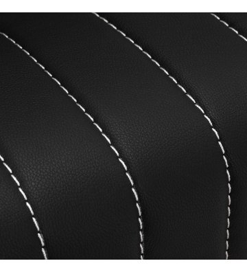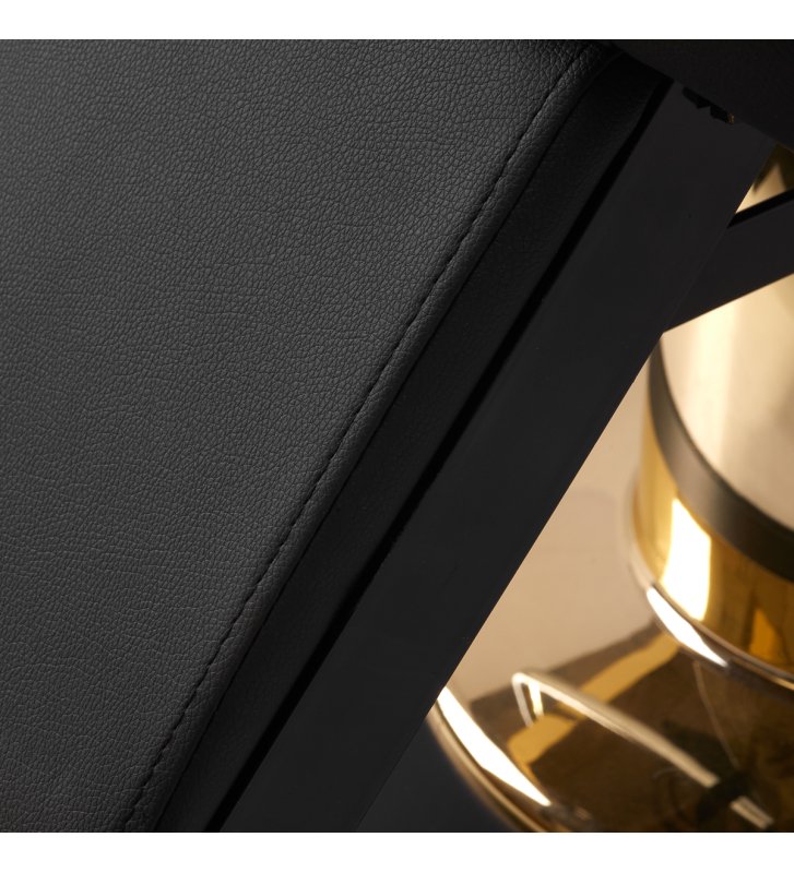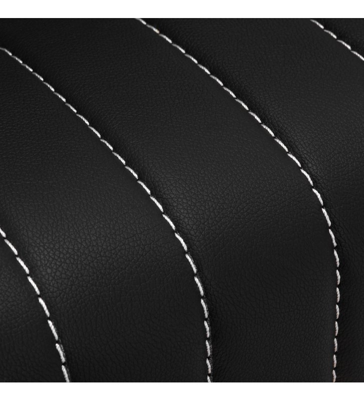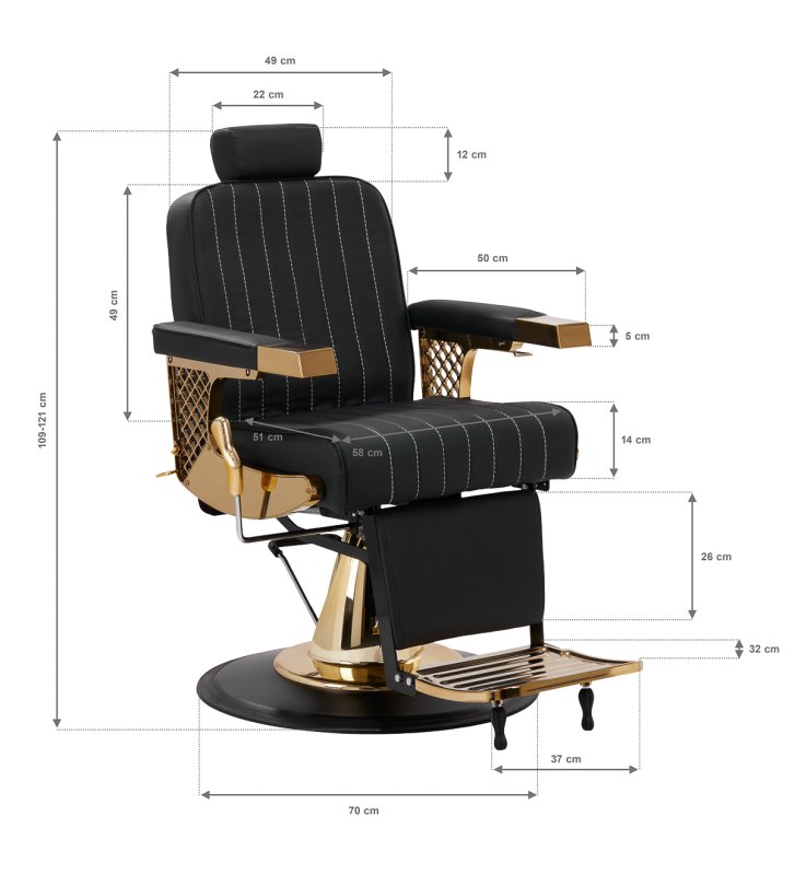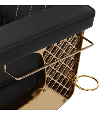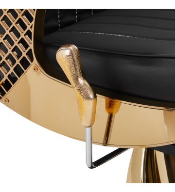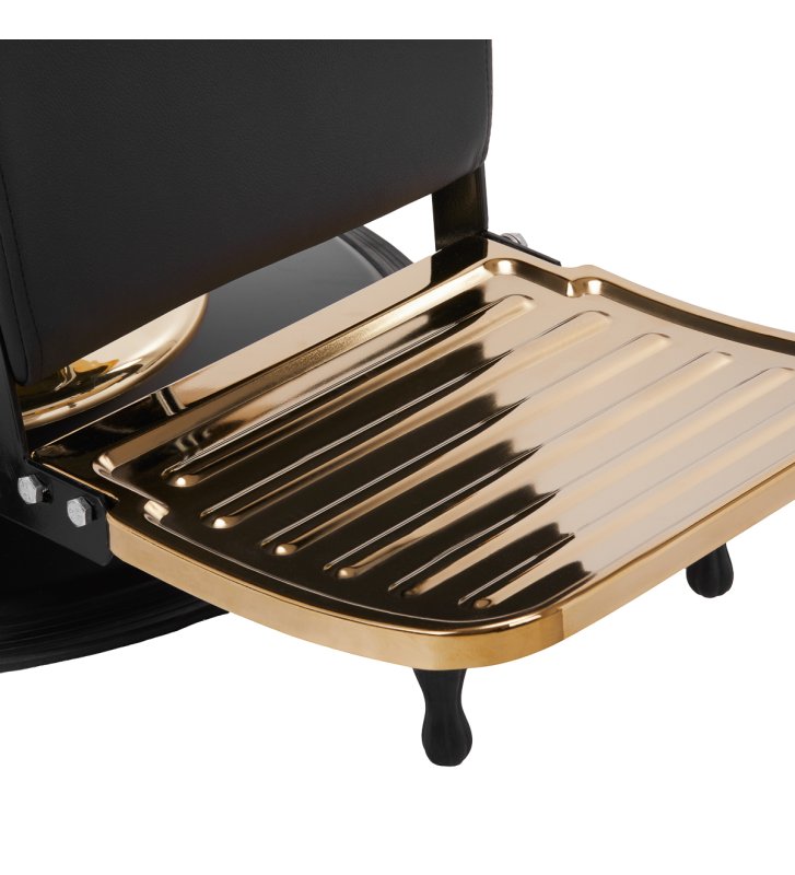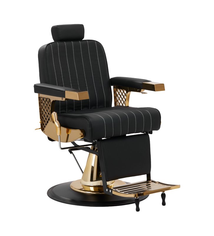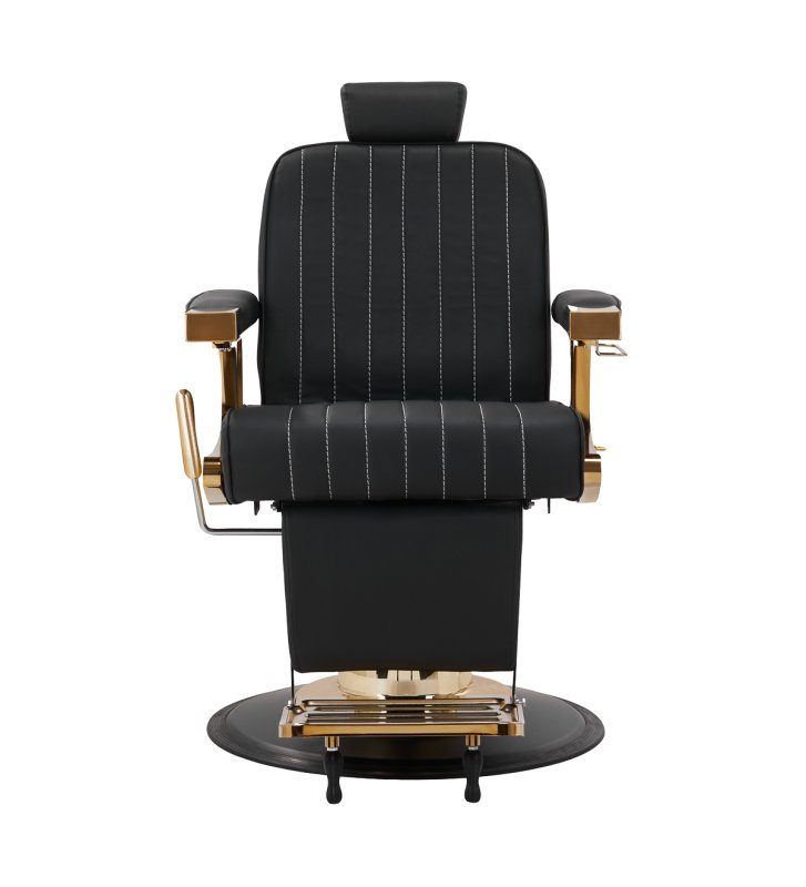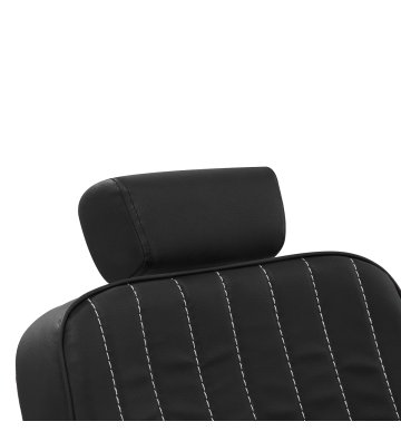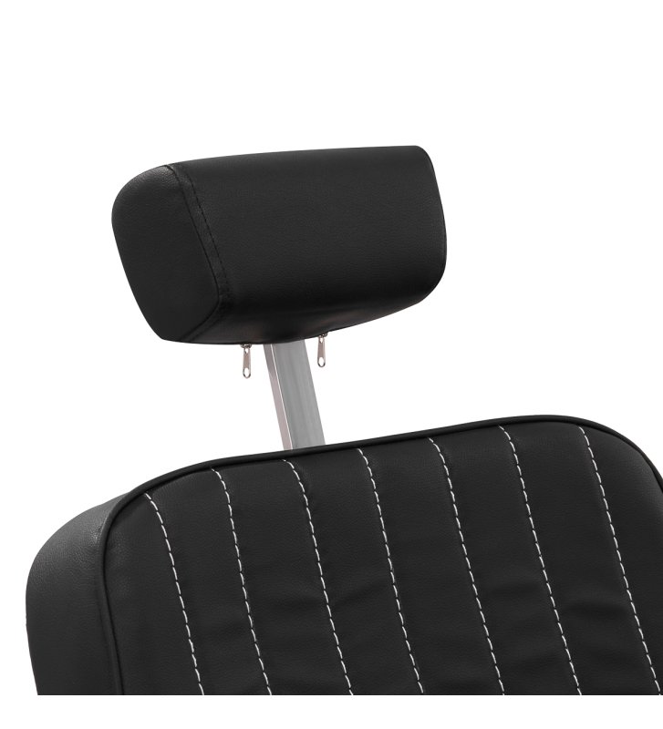Solidna, szeroka konstrukcja podstawy zapewnia stabilność, a co za tym idzie – wysoki komfort użytkowania. Wypełnienie z trwałej, odpornej na odkształcenia pianki oraz obicie wykonane z przyjemnej w dotyku skóry syntetycznej zapewniają trwałość mebla i jego komfortowe użytkowanie przez długi czas. Sprawiają również, że sprzęt jest odporny na wilgoć, wytrzymały oraz łatwy do czyszczenia. Pokrycie w odcieniach czerni wraz z estetycznymi przeszyciami nadaje mu wyjątkowego charakteru. Designerskie polerowane elementy dekoracyjne, nawiązujące do stylu vintage, doskonale wpasują się w klimat salonów barberskich, tworząc ich niesamowitą atmosferę.