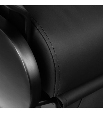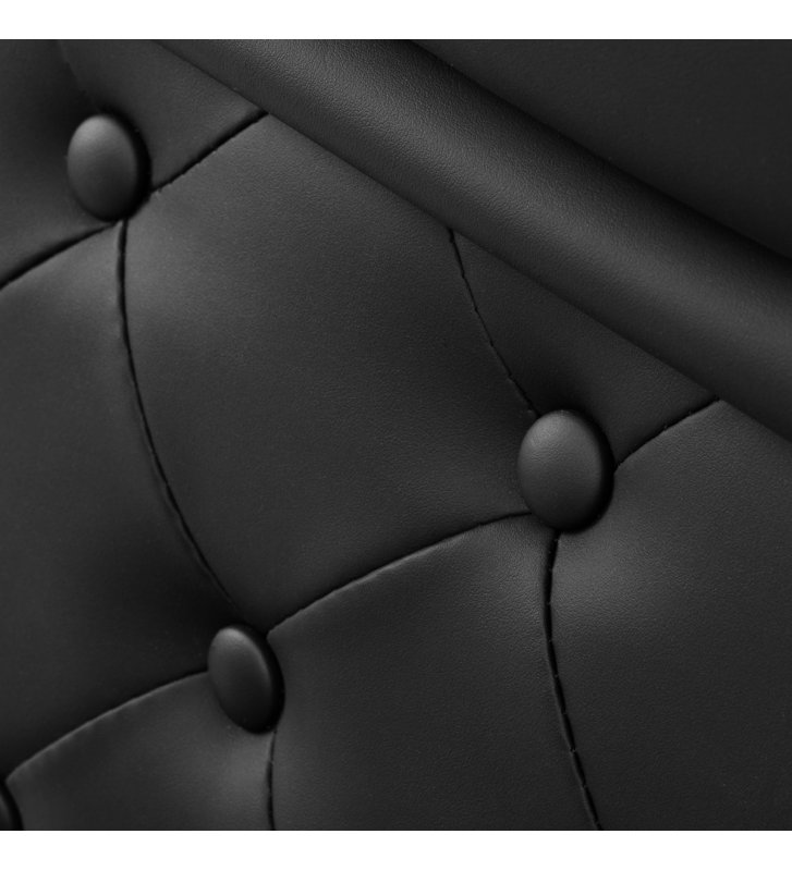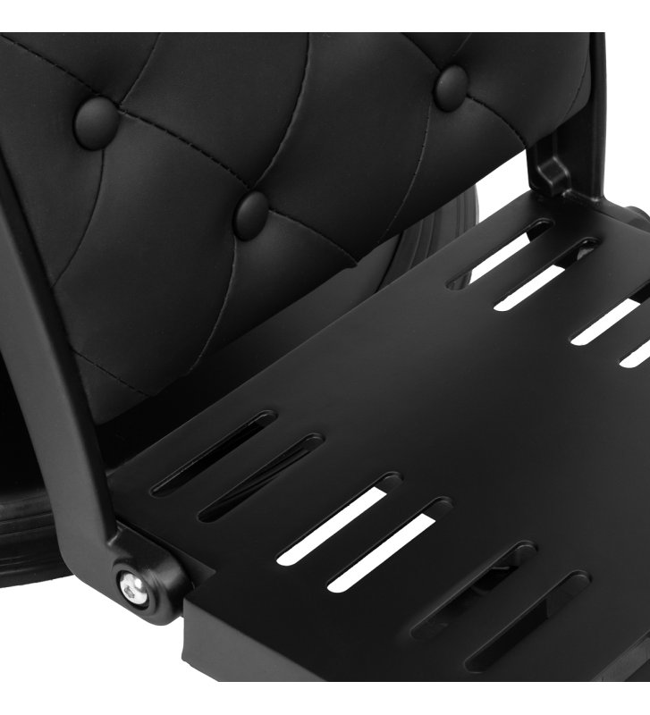 Stabilna konstrukcja podstawy z elementami w odcieniach czerni zapewnia wysoki komfort użytkowania. Wypełnienie z trwałej, odpornej na odkształcenia pianki oraz obicie wykonane z przyjemnej w dotyku skóry syntetycznej zapewniają trwałość mebla i jego komfortowe użytkowanie przez długi czas. Sprawiają również, że sprzęt jest odporny na wilgoć, wytrzymały oraz łatwy do czyszczenia. Pokrycie w odcieniach czerni wraz z oryginalnym pikowaniem i ozdobnymi guzikami nadają mu wyjątkowego charakteru. Designerskie elementy dekoracyjne inspirowane motocyklami, nawiązujące do stylu vintage, doskonale wpasują się w klimat salonów barberskich, tworząc ich niesamowitą atmosferę.