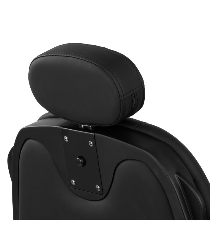 Trwały podnośnik hydrauliczny pozwala na regulację wysokości siedziska w granicach 54-67 cm, nawet w momencie, gdy klient siedzi na fotelu. Gwarantuje to bardziej ergonomiczną pracę, zapewniając możliwość dopasowania poziomu siedziska do wzrostu zarówno klienta, jak i osoby wykonującej zabieg. Fotel posiada odchylane oparcie oraz regulowany podnóżek, dzięki czemu możliwe jest ułożenie klienta w dogodnej, półleżącej pozycji. Takie ustawienie gwarantuje lepszy dostęp podczas niektórych usług. Dodatkowo wysuwany zagłówek zapewnia doskonałe podparcie dla głowy, dzięki możliwości dopasowania do indywidualnych potrzeb.