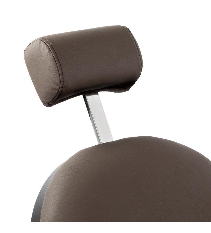 Trwały podnośnik hydrauliczny pozwala na swobodną regulację wysokości siedziska w granicach 56-70 cm, nawet w momencie, gdy klient siedzi na fotelu. Gwarantuje to ergonomię pracy oraz zapewnia możliwość dopasowania poziomu siedziska do wzrostu zarówno klienta, jak i osoby wykonującej zabieg. Fotel posiada odchylane oparcie oraz regulowany podnóżek, dzięki czemu możliwe jest ułożenie klienta w dogodnej, półleżącej pozycji. Takie ustawienie gwarantuje lepszy dostęp podczas niektórych usług. Dodatkowo wysuwany o 20 cm zagłówek zapewnia doskonałe podparcie głowy, dzięki możliwości dopasowania do indywidualnych potrzeb.