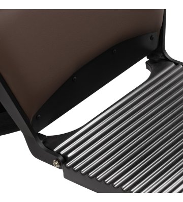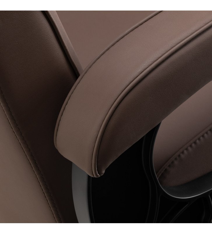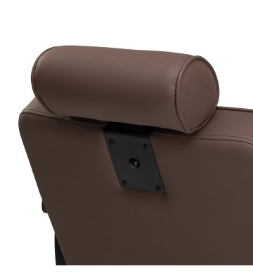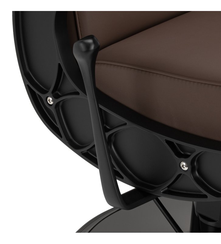 Komfortowe siedzisko wypełnione pianką gwarantuje klientowi wygodę w trakcie różnorodnych usług. Zapewniające doskonałe wsparcie pleców oparcie pozwala na zajęcie dogodnej pozycji, co ma znaczenie zwłaszcza w przypadku dłuższych zabiegów. Wyposażenie fotela w mechanizm pełnego obrotu sprawia, że praca staje się bardziej efektywna i wygodna. Tapicerowane podłokietniki umieszczone na odpowiedniej wysokości umożliwiają prawidłowe ułożenie barków klienta, zapobiegając chowaniu głowy w ramionach i garbieniu się.