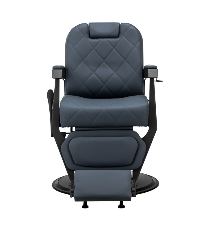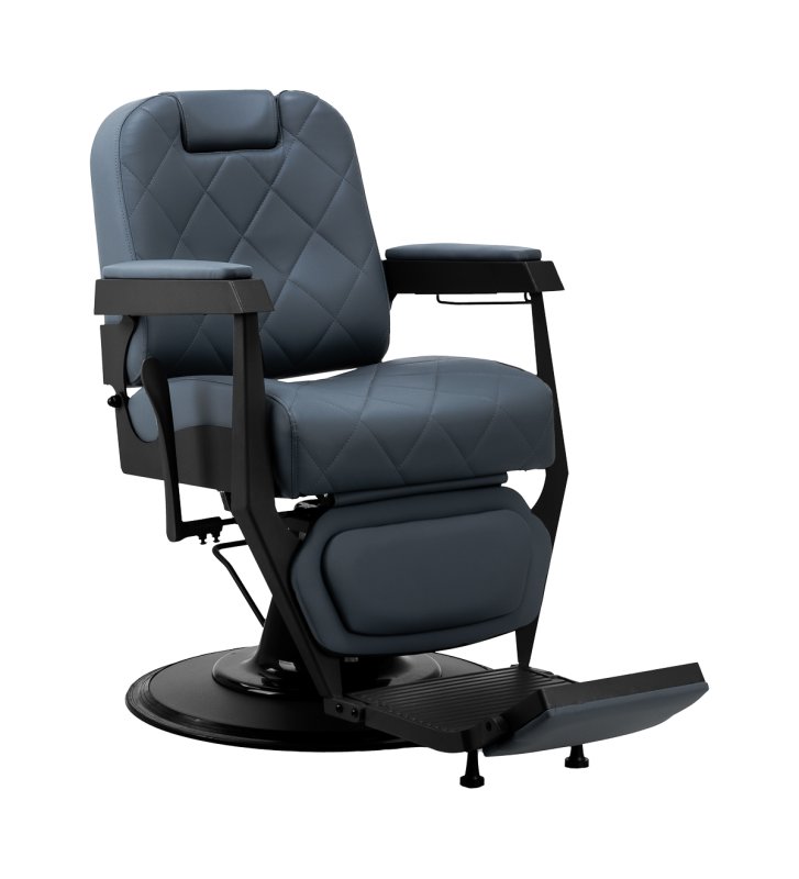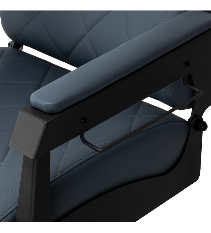 Stabilna konstrukcja zapewnia bezpieczeństwo i długą żywotność mebla. Siedzisko wypełnione pianką odporną na odkształcenia oraz obicie z miękkiej, matowej skóry syntetycznej zapewniają meblowi trwałość i wygodę. Odporne na wilgoć materiały są nie tylko wytrzymałe, ale również łatwe w czyszczeniu. Grafitowa tapicerka w połączeniu z czarną ramą nadaje fotelowi nowoczesny i profesjonalny wygląd, a minimalistyczny styl pozwala mu wpasować się w wystrój każdego salonu barberskiego.
