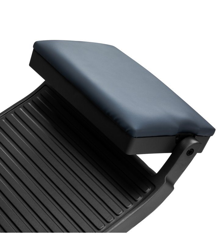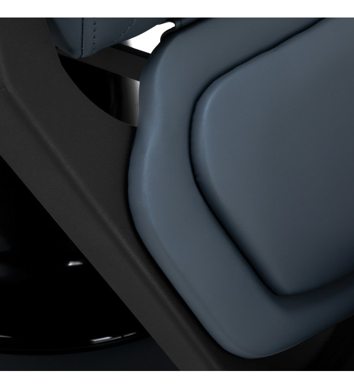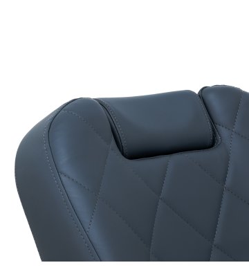 Ergonomiczna konstrukcja siedziska oraz odpowiednio wyprofilowane oparcie zapewniają klientowi wygodę nawet podczas dłuższych zabiegów. Tapicerowane podłokietniki zamontowane na optymalnej wysokości umożliwiają prawidłowe ułożenie ramion klienta, co zapobiega napięciom w okolicach karku i barków. Mechanizm pełnego obrotu zwiększa swobodę pracy i umożliwia łatwe ustawienie fotela w dowolnej pozycji.
