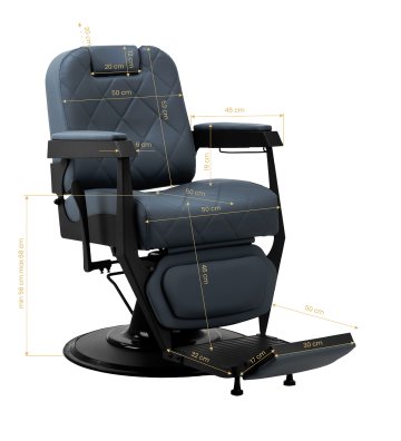 Wydajny podnośnik hydrauliczny umożliwia płynną regulację wysokości siedziska w zakresie 56-68 cm, nawet wtedy, gdy klient siedzi na fotelu. Zapewnia to ergonomię pracy i pozwala dostosować wysokość siedziska do wzrostu zarówno klienta, jak i barbera. Odchylane oparcie i regulowany podnóżek pozwalają ustawić fotel w pozycji półleżącej, co zapewnia optymalny dostęp podczas takich usług jak golenie czy pielęgnacja brody. Wysuwany o 20 cm zagłówek gwarantuje stabilne podparcie głowy, niezależnie od wzrostu klienta.