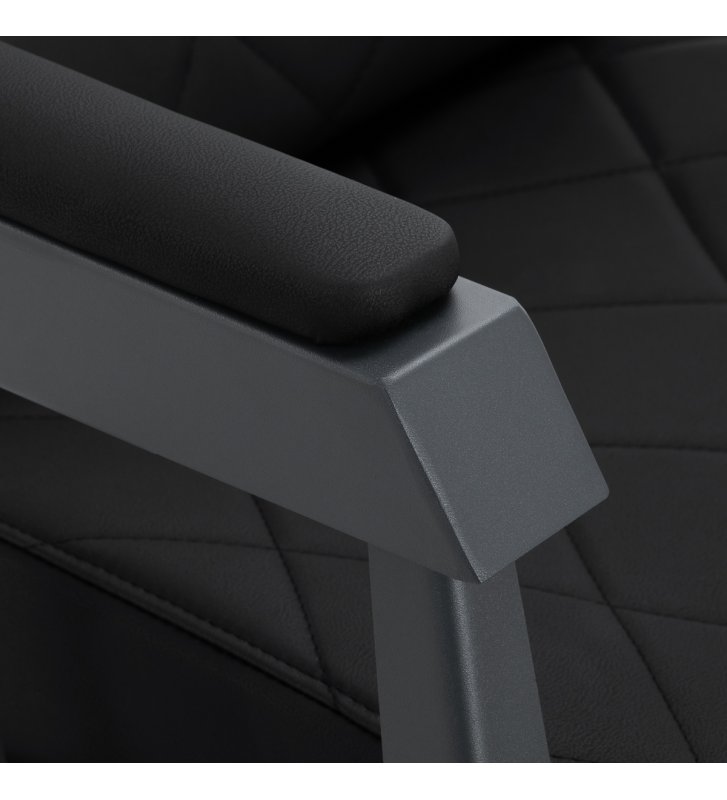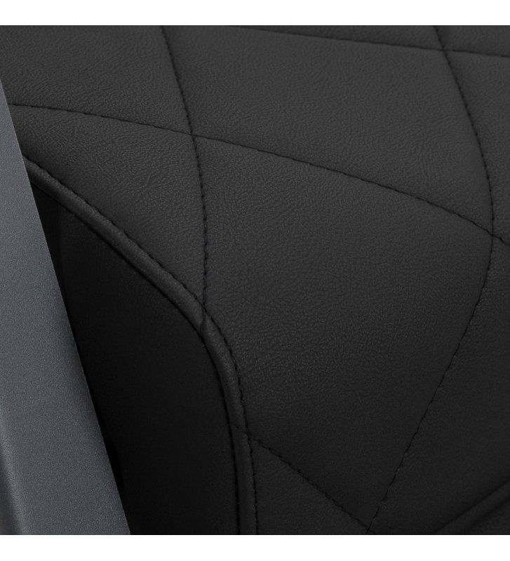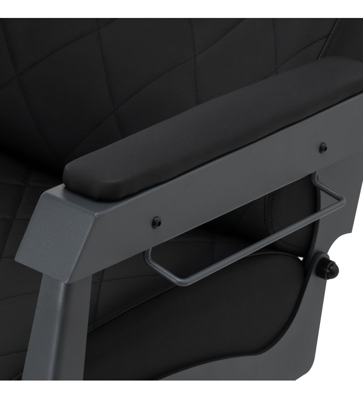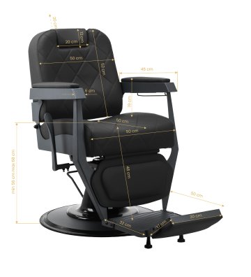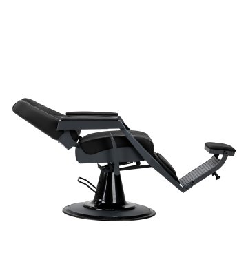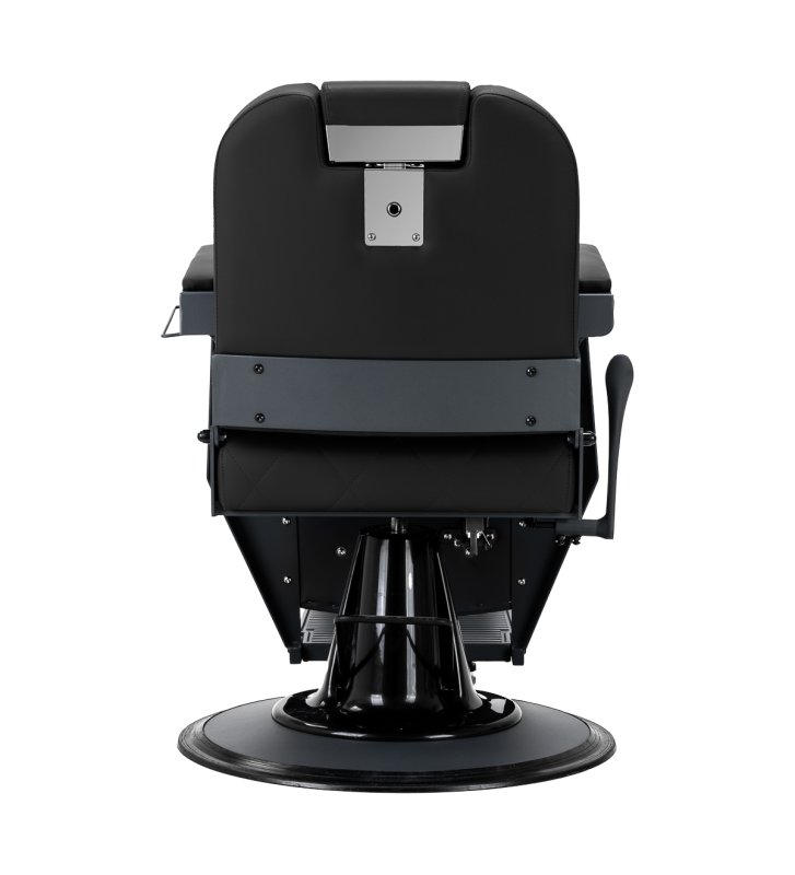 Stabilna konstrukcja zapewnia bezpieczeństwo i długą żywotność mebla. Siedzisko wypełnione pianką odporną na odkształcenia oraz obicie z miękkiej skóry syntetycznej zapewniają meblowi trwałość i wygodę. Odporne na wilgoć materiały są nie tylko wytrzymałe, ale również łatwe w czyszczeniu. Czarna tapicerka w połączeniu z czarną ramą nadaje fotelowi nowoczesny i profesjonalny wygląd, a minimalistyczny styl pozwala mu wpasować się w wystrój każdego salonu barberskiego.
