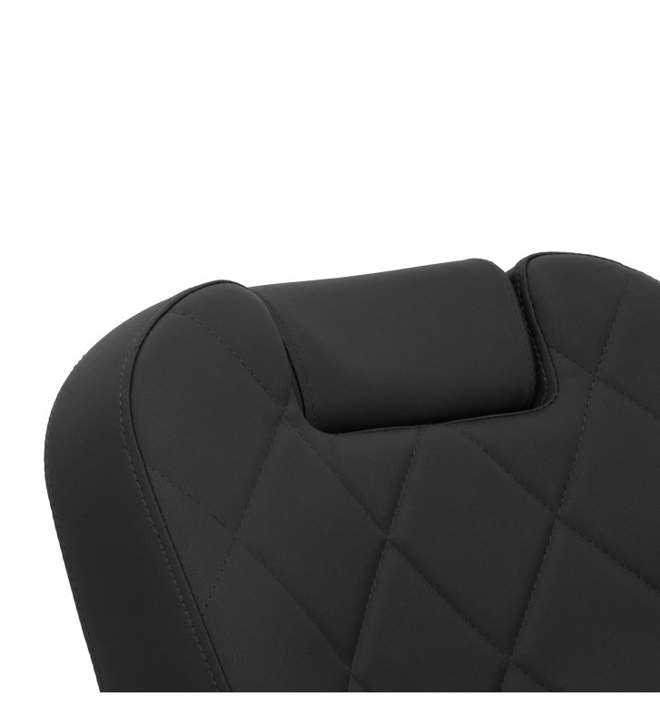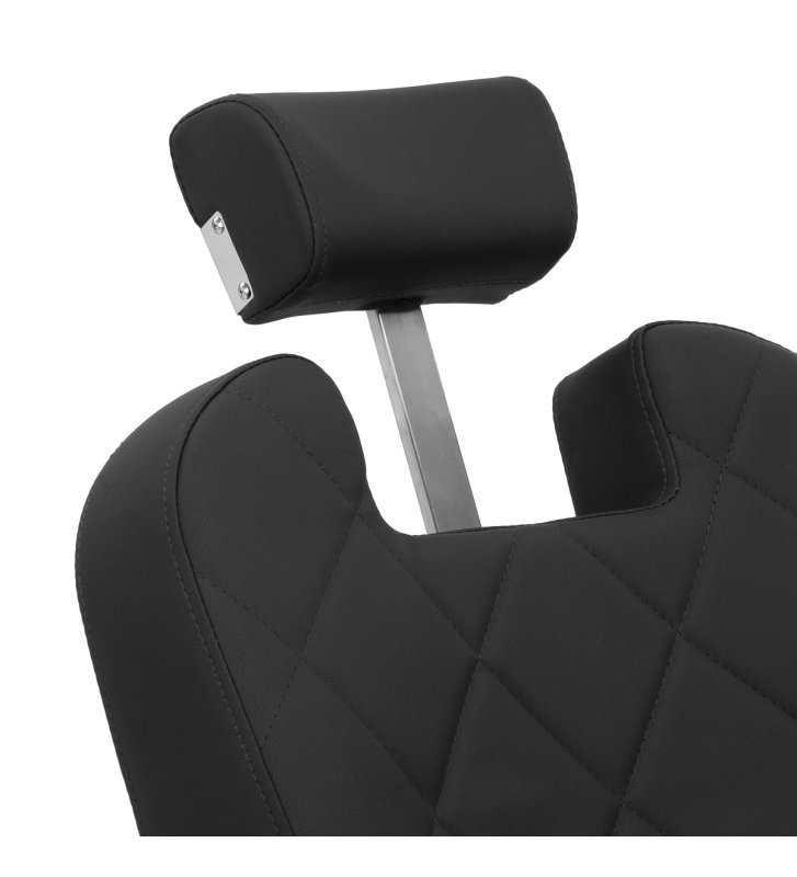 Ergonomiczna konstrukcja siedziska oraz odpowiednio wyprofilowane oparcie zapewniają klientowi wygodę nawet podczas dłuższych zabiegów. Tapicerowane podłokietniki zamontowane na optymalnej wysokości umożliwiają prawidłowe ułożenie ramion klienta, co zapobiega napięciom w okolicach karku i barków. Mechanizm pełnego obrotu zwiększa swobodę pracy i umożliwia łatwe ustawienie fotela w dowolnej pozycji.