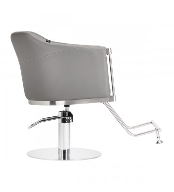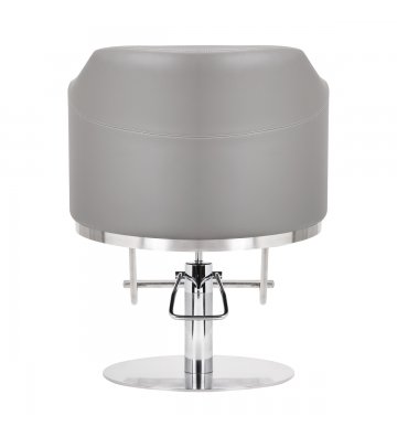 Solidna, okrągła podstawa zapewnia stabilność w trakcie użytkowania. Gładka powierzchnia sprawia, że element ten jest łatwy do utrzymania w czystości. Szerokie siedzisko, wypełnione pianką o odpowiedniej twardości, gwarantuje wysoki komfort użytkowania i wygodę nawet podczas wielogodzinnych zabiegów. Podłokietniki znajdują się na wysokości, która pozwala na prawidłowe ułożenie barków klienta – sprawia to, że nie chowa głowy w ramionach ani się nie garbi – wyraźnie usprawniając zabiegi, w tym strzyżenie. Ułatwia to precyzyjne wykonywanie usług.